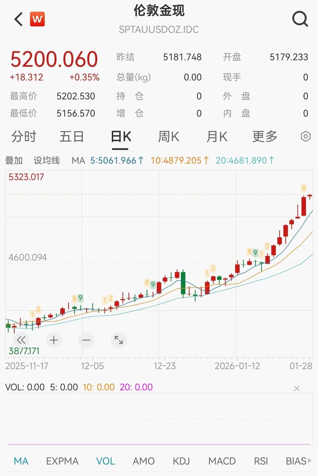 消息面上,现货黄金1月28日盘中首次突破5200美元/盎司,再创新高,新年首月累计涨超880美元。截至发稿,报5200.06美元/盎司,涨0.35%。